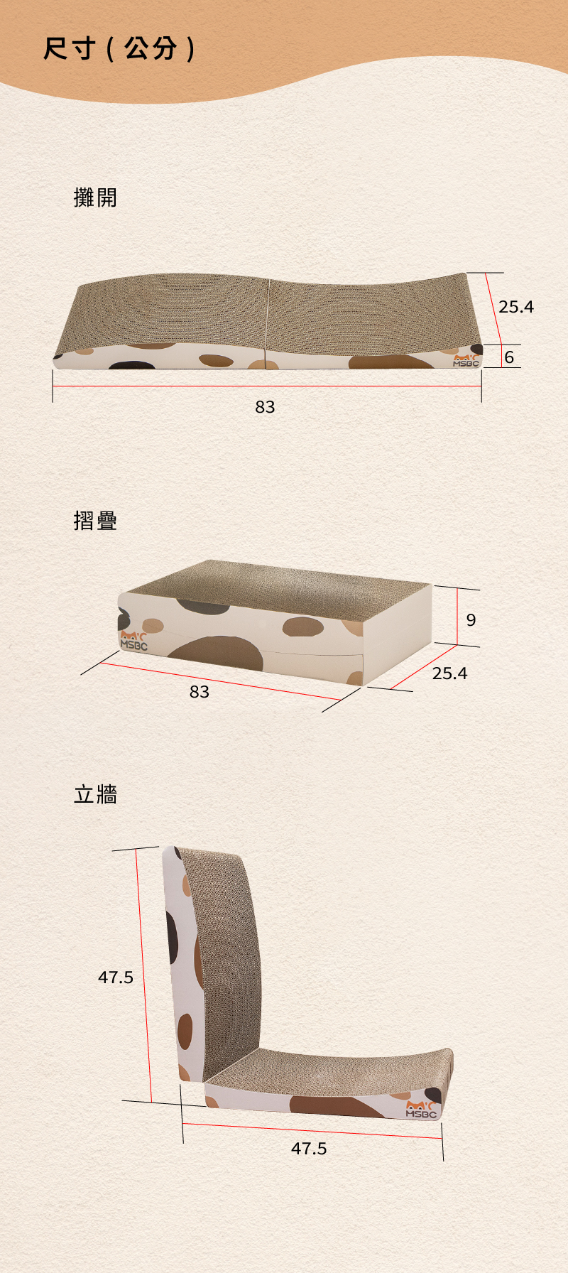 攤開|長 83x寬 25.4x高 6 cm
