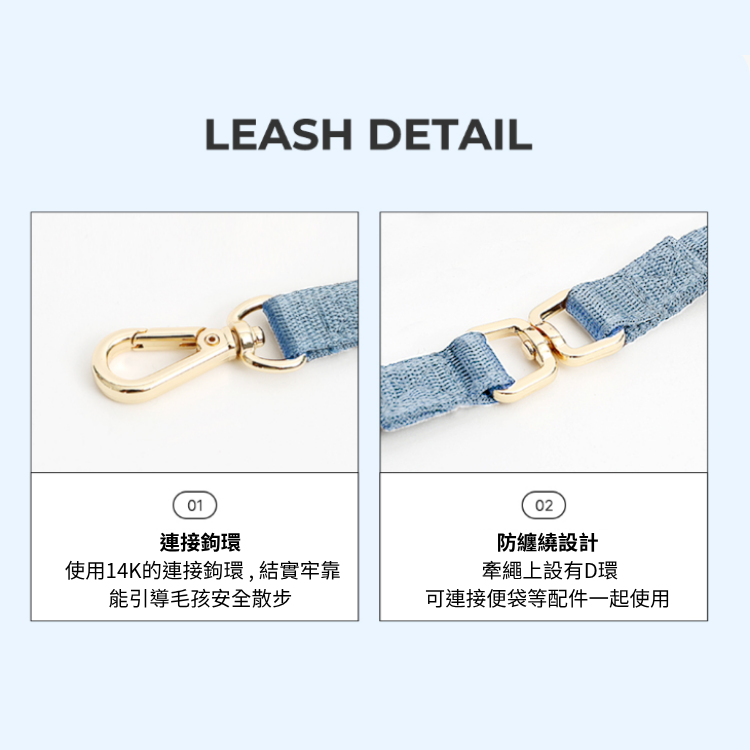 牽繩材質:尼龍織帶(外層)+ 網眼內襯(內裡)